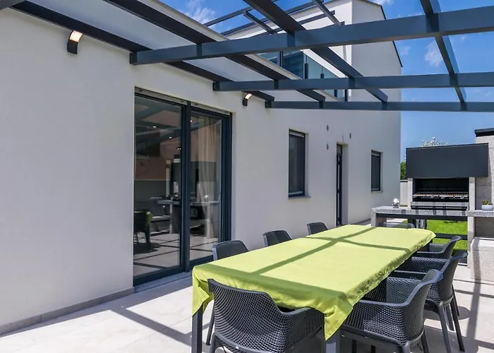 Die Villa bietet eine Essecke mit Ausstattung zur Kaffee- & Teezubereitung. Es gibt auch eine Mikrowelle, eine Kaffee-/Teemaschine und einen Kühlschrank, damit Sie sich Ihr eigenes Essen zubereiten können. Von der Villa sind es 15 Minuten mit dem Auto zum Flughafen Pula. Die Unterkunft verfügt über eine Terrasse, wo Sie sich nach einem anstrengenden Tag entspannen können, sowie über einen Swimmingpool.